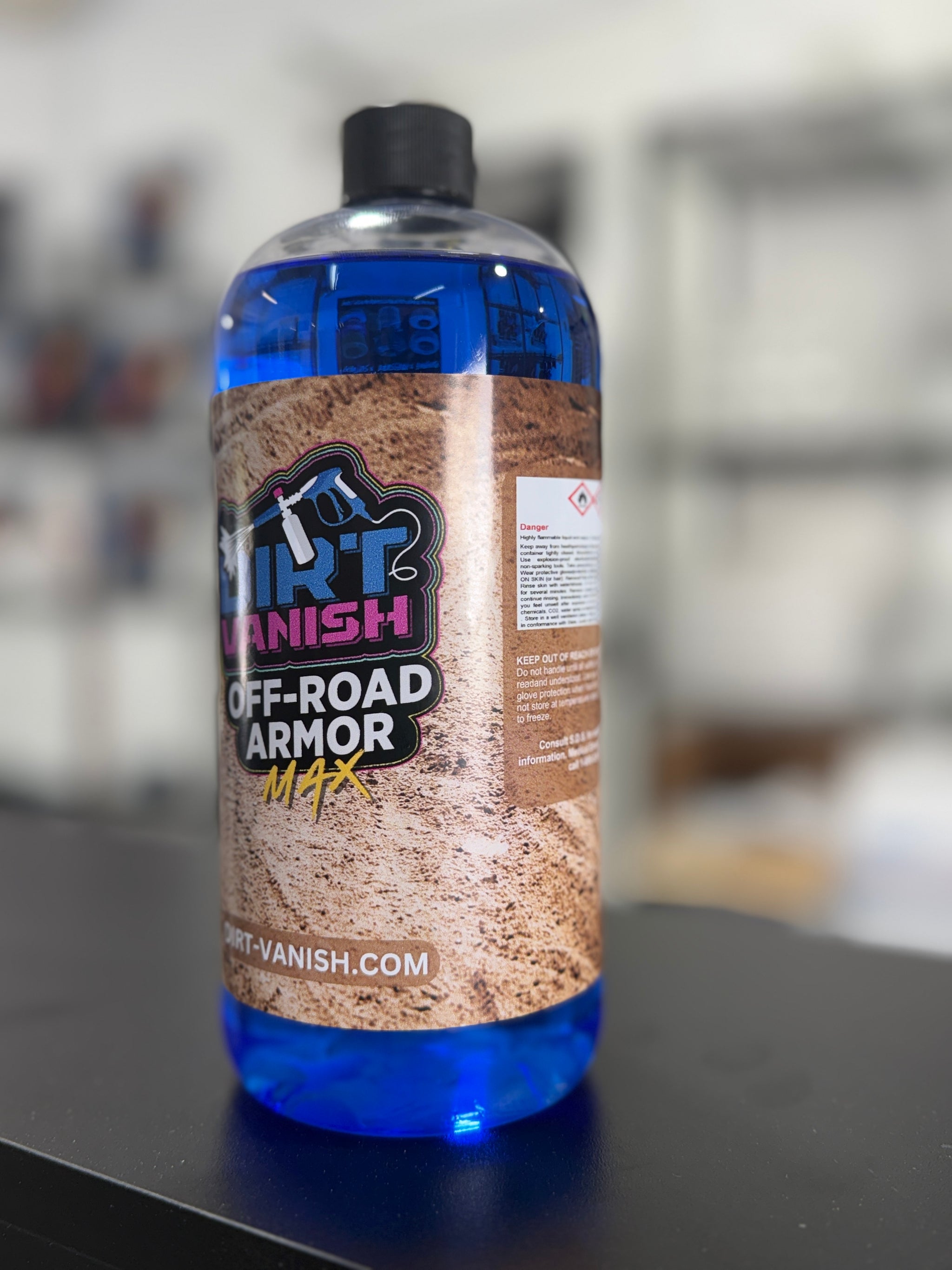 Off-Road Armor MAX by Dirt Vanish is the ultimate finishing spray for your SxS, atv, skid steer, mega truck, or heavy equipment. Applied with a towel, spray gun, or air gun, it delivers a deep shine while creating a protective barrier that helps resist dirt, mud, and grime.